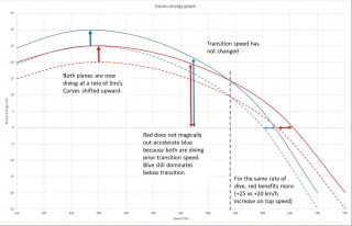 | Description | Excess Energy Diagram depicting flight characteristics of a Red aircraft and a Blue aircraft in a diving scenario. |